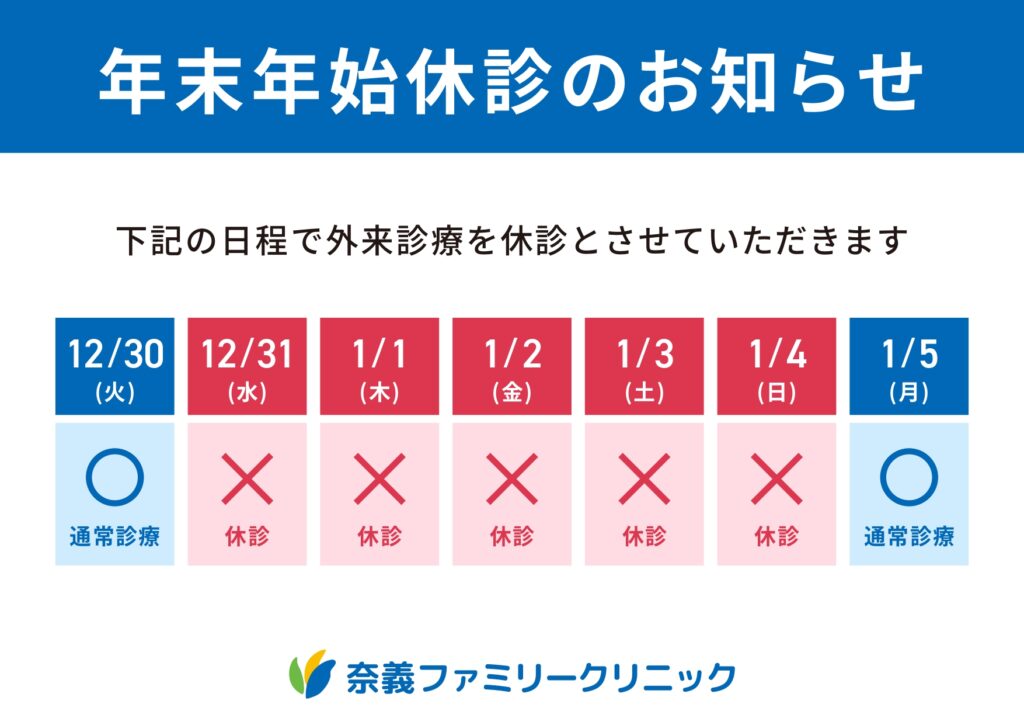年末年始は下記の通り休診いたします。