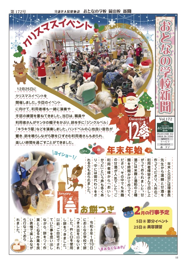 大正琴やダンスなど様々なボランティアの方に起こしいただいています。また利用者さんに季節感を感じながら楽しんでいただけるイベントも開催しています。